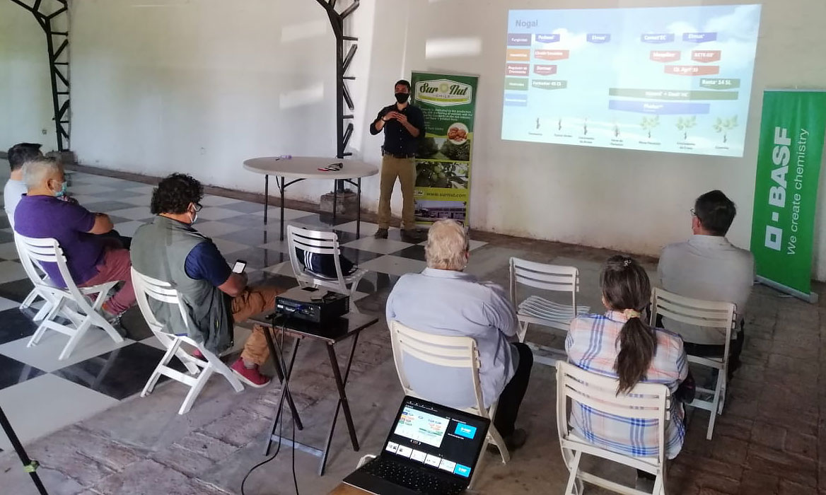 Además, Gonzalo Espindola, representante técnico especialista RM y V región BASF Chile, realizó la Charla: “Botryosphaeraceas, un enemigo oculto”, en la cual expuso las consecuencias de esta enfermedad en los nogales y sus frutos.